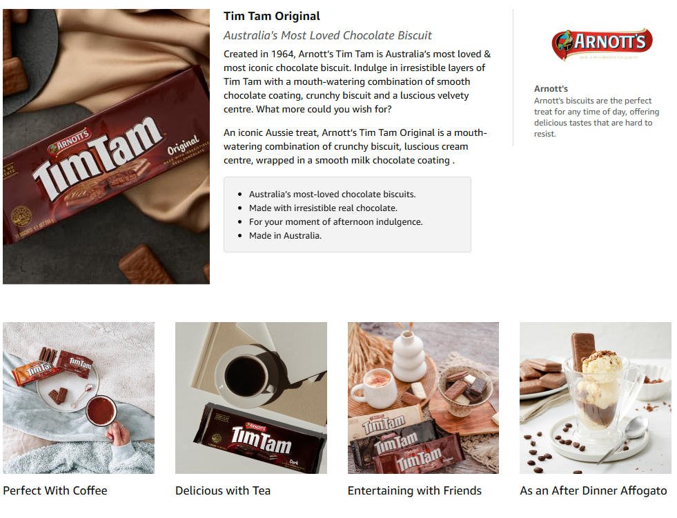 - Arnott’s Tim Tam Original the most irresistible chocolate biscuit.