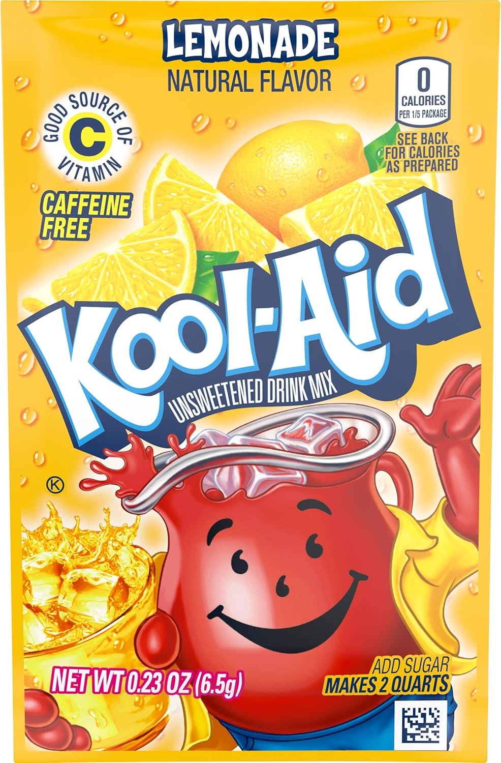 - Fifty 0.14 oz. packets of Kool-Aid Artificially Flavored Unsweetened Powdered Drink Mix